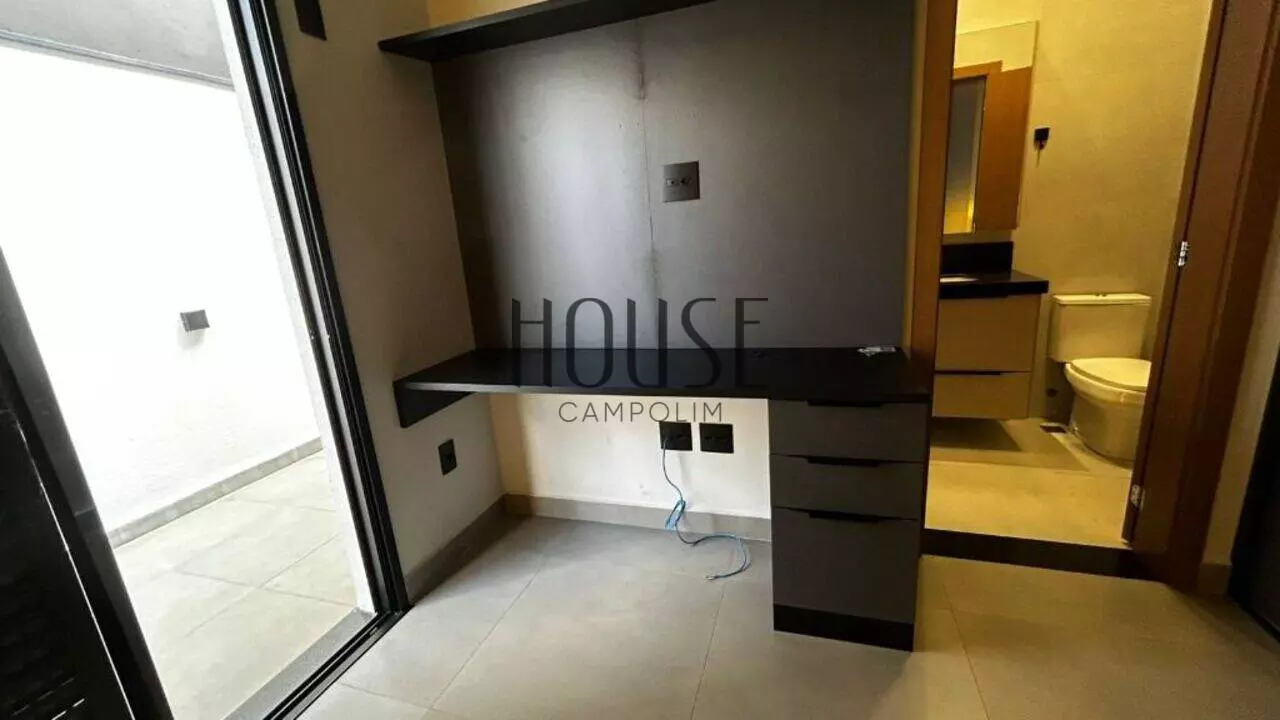 O imóvel dispõe de 3 suítes com móveis planejados e ar-condicionado, além de um escritório que pode ser utilizado como home office ou espaço de estudo.